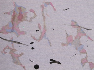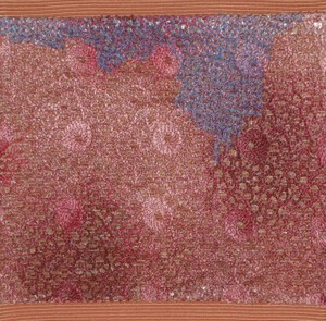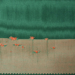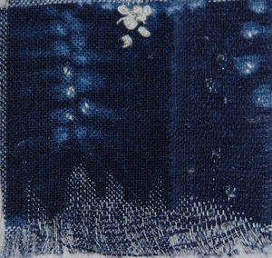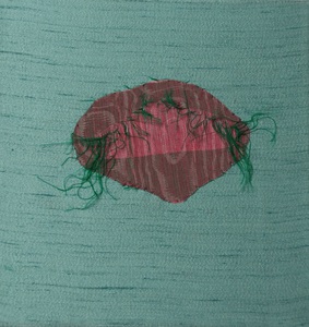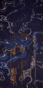 2025Een combinatie van appliqué en losgehaalde inslagdraden.