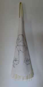 Werken rond het thema vrouw-zijn in al zijn aspecten. Soms zijn de werken uitgevoerd op hergebruikt huishoudtextiel.